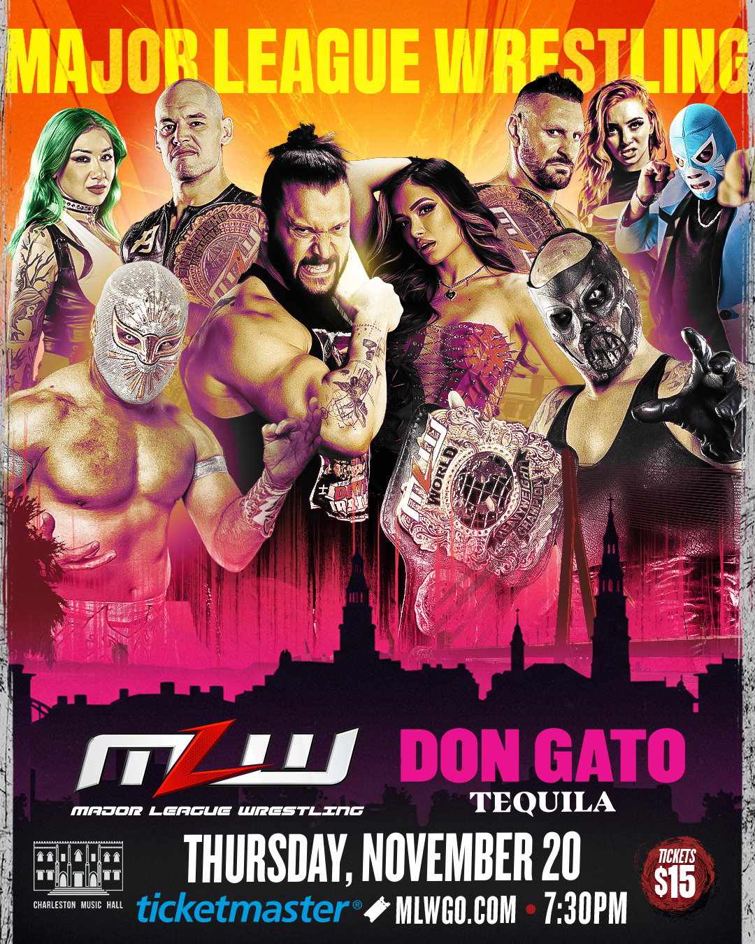 See pro wrestling return to downtown Charleston for the first time in 32 years and party with Don Gato Tequila as Major League Wrestling brings its wildest night yet to the Lowcountry!